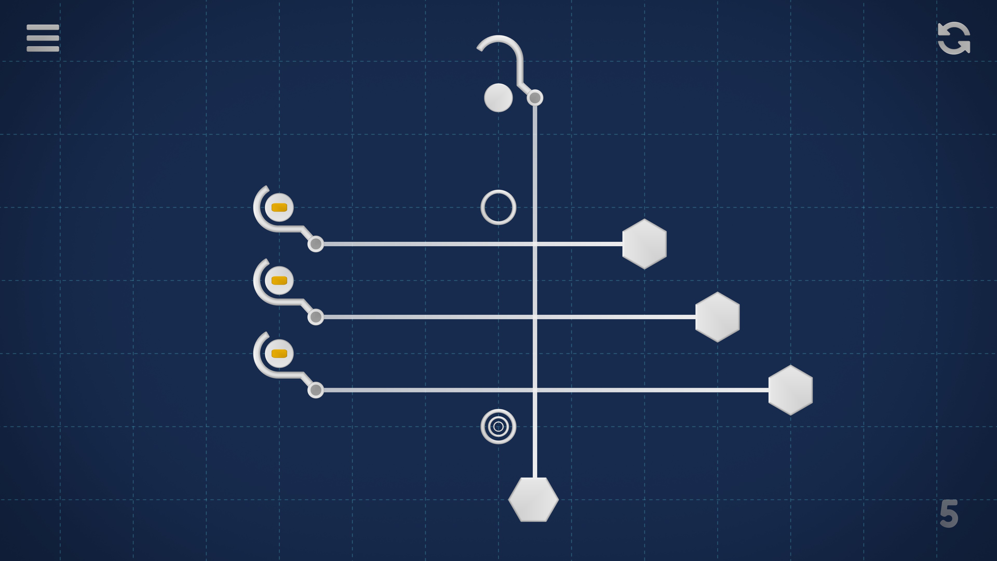 Multiple new mechanics were interested over the course of SiNKR. These involved twisting hooks, redirection launchers, new shape types, and more. I really liked having each new mechanic introduced in a series of levels that built up on what it could do without directly explaining it. It felt very fitting for a puzzle game and was done very smoothly so that it wasn’t confusing. However I wish more had been done to build upon the mechanics. While levels were plenty complex, I felt the full capabilities of the tool interactions was left unfulfilled. The 60 level count also felt short for the game’s potential.