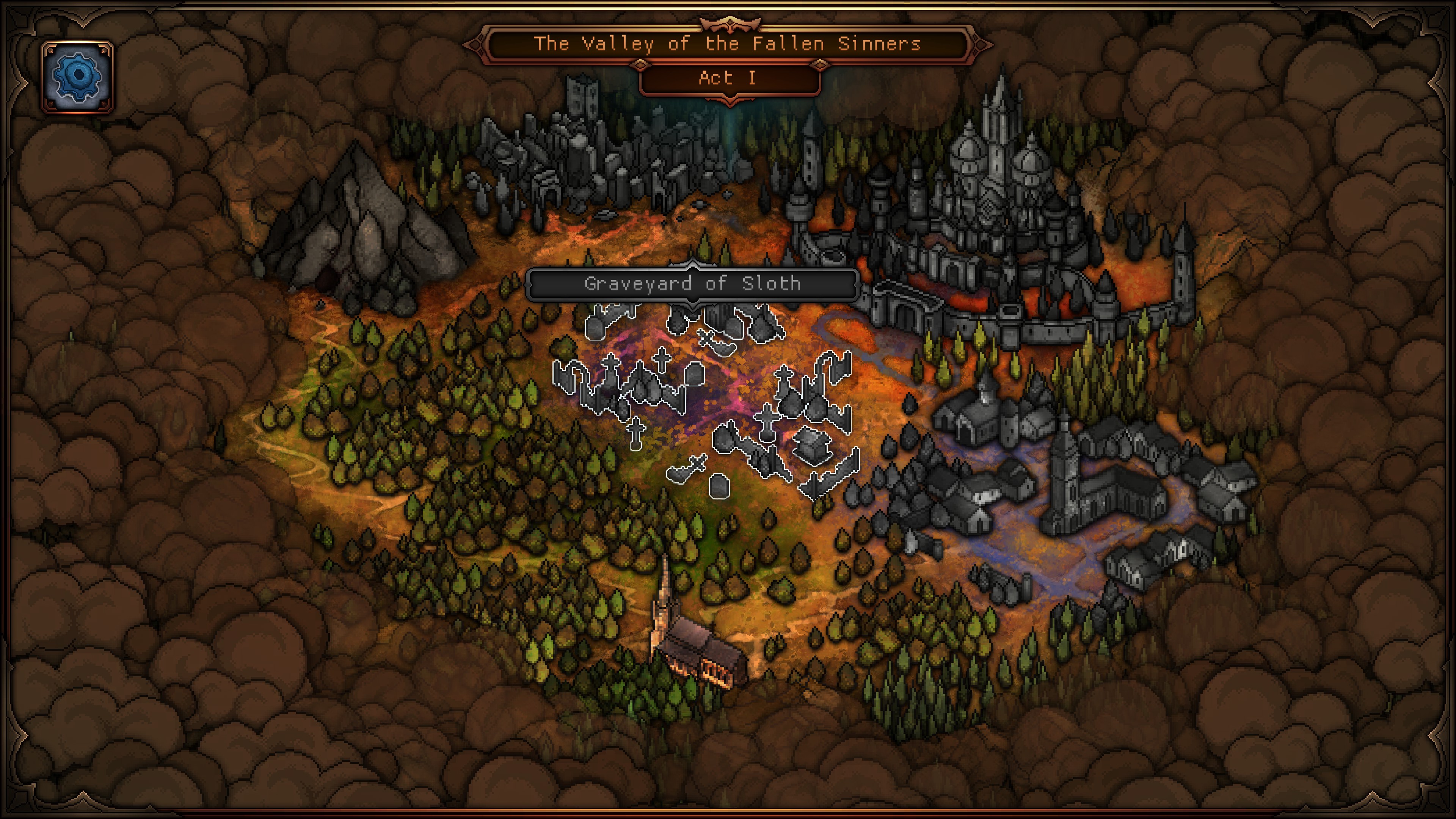 Currently only the first of 7 planned areas is available in the game. Each area is themed after a sin and the first is Gluttony. The sin in command of an area adds conditions which can increase the sinfulness level of your party, and must be defeated in a unique boss battle to complete the highest difficulty for the area. More information on the planned content for the game is available on the Kickstarter.