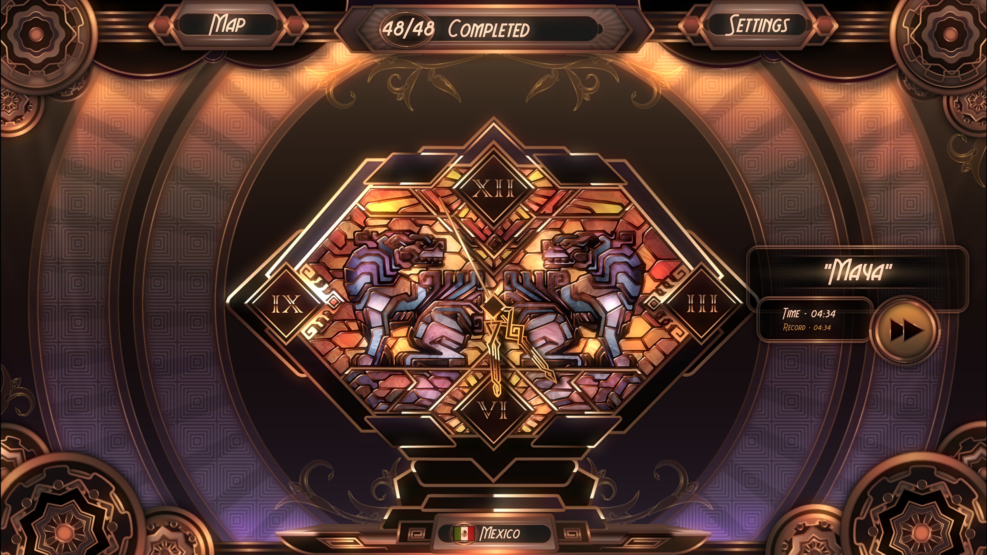 Glass Masquerade has a relaxing atmosphere with beautiful puzzles and pleasing music. Music can vary from bells to piano. While I wish the music for each puzzle fit more with the country in the base game, the demos of the DLC puzzles sound like this was done for the DLC. In addition to the music, each puzzle comes with a unique clock that the pieces fit inside of. The images for puzzles can range from people and animals to mythical beasts and historic technology. Puzzles often need to be nearly finished before it’s clear what the image is.