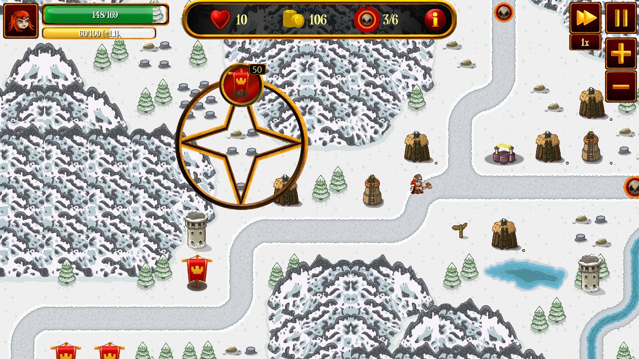 Gold is the currency for within a level and is earned by slain enemies or electing to take an enemy wave earlier than it would normally be released. Within an enemy wave, enemies do not come all at once but may be spread out into smaller sub-waves. Enemies from prior waves to not have to be entirely eliminated before new waves can be brought in.