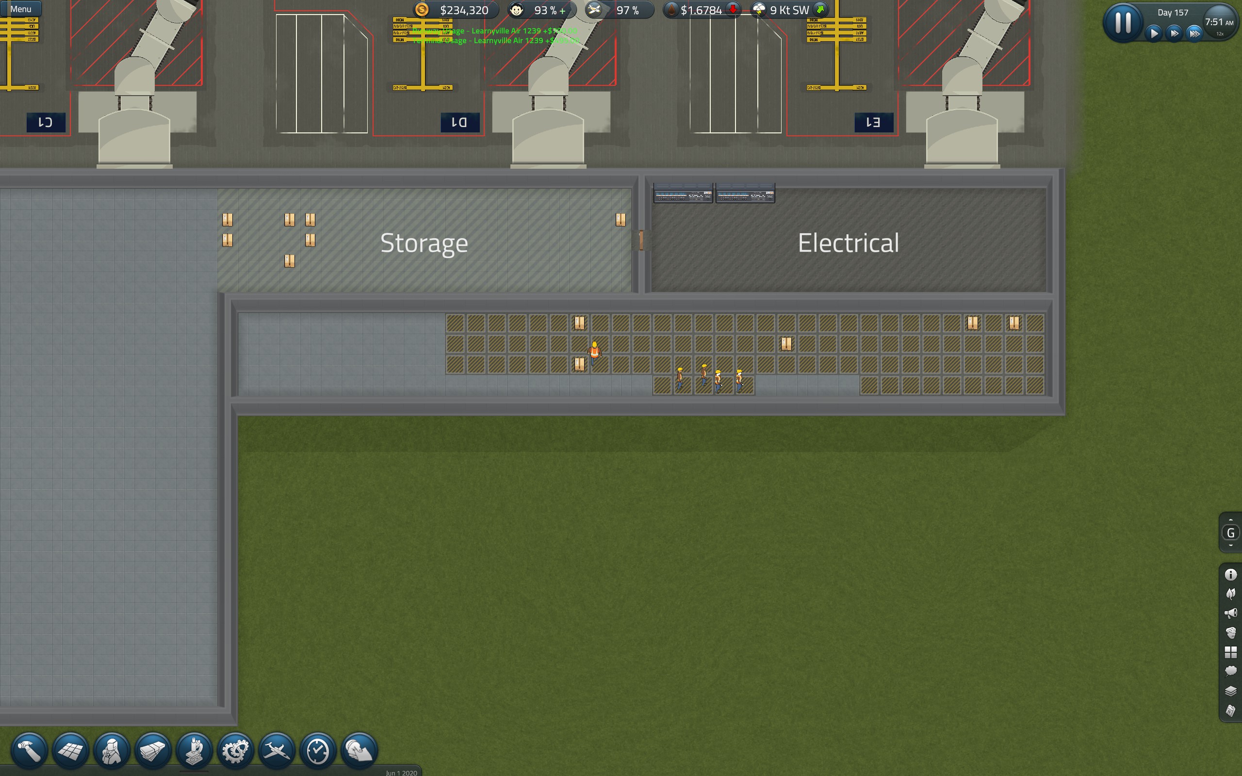 I also felt that the building staff were very well done. There were some breaks from reality that I thought were actually very valuable to the game. For instance, building staff were able to phase through walls if necessary to reach building sites without having to build a bunch of scaffolding or something similar. That was super valuable to me because it meant that I didn’t have to worry about micromanaging all of my builders and “Did I lay this thing in the right order such as they’re actually going to be able to do it”. And the staff don’t end up glitched out somewhere. I really appreciated just being able to say “go build this”. And they would be able to figure out some way to get there, get the parts, and get it done.