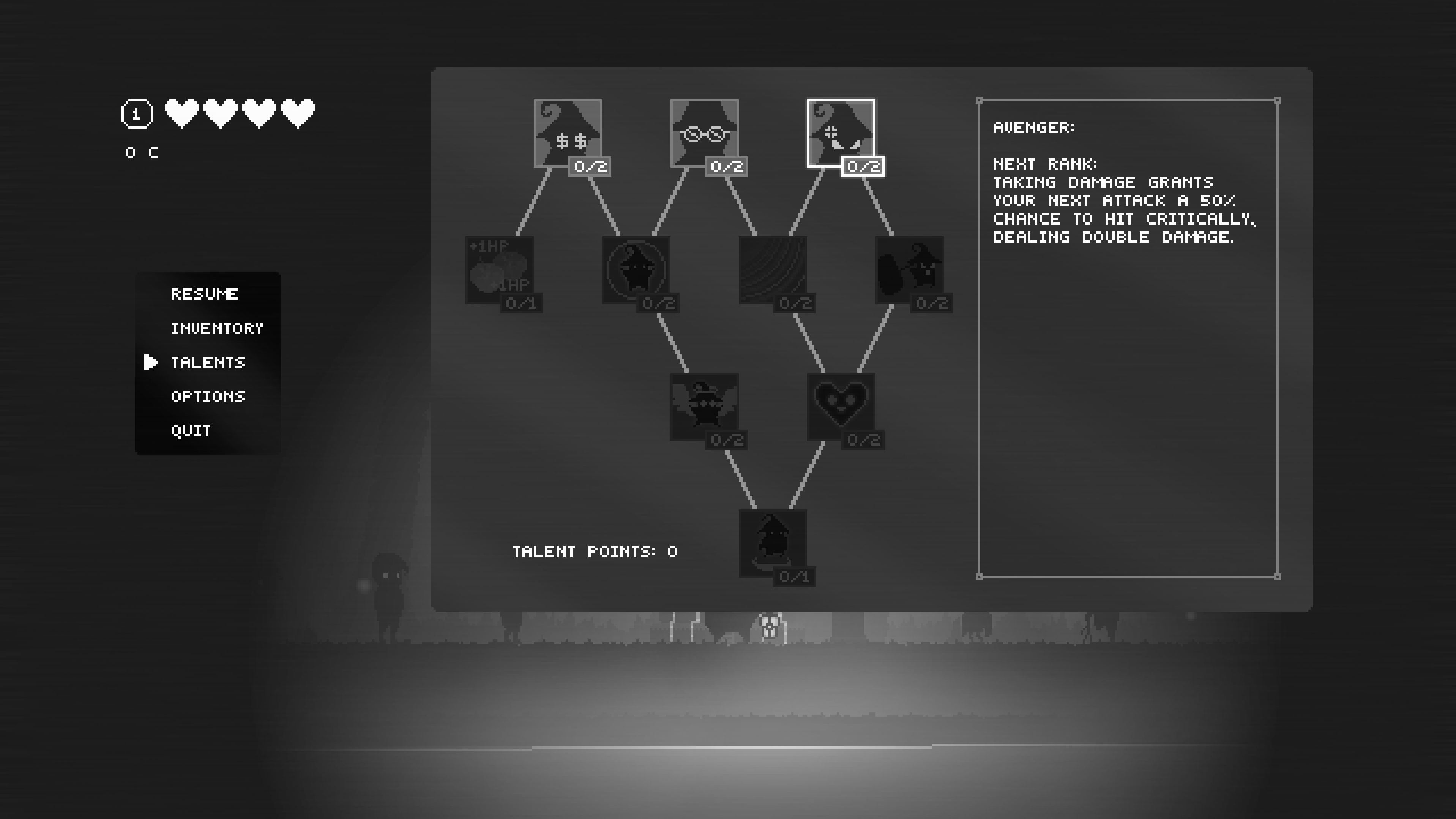 I really liked the art and music of The Treehouse Man. It produced a very surreal and engaging atmosphere. The silhouettes of the characters and backgrounds lends itself well to a creepy forest feel without making it difficult to see and thus dodge attacks. I particularly enjoyed the character design of the enemies. They were unique and well associated with their attacks, without being a dead giveaway what was going to happen the first time the player fought a new enemy.