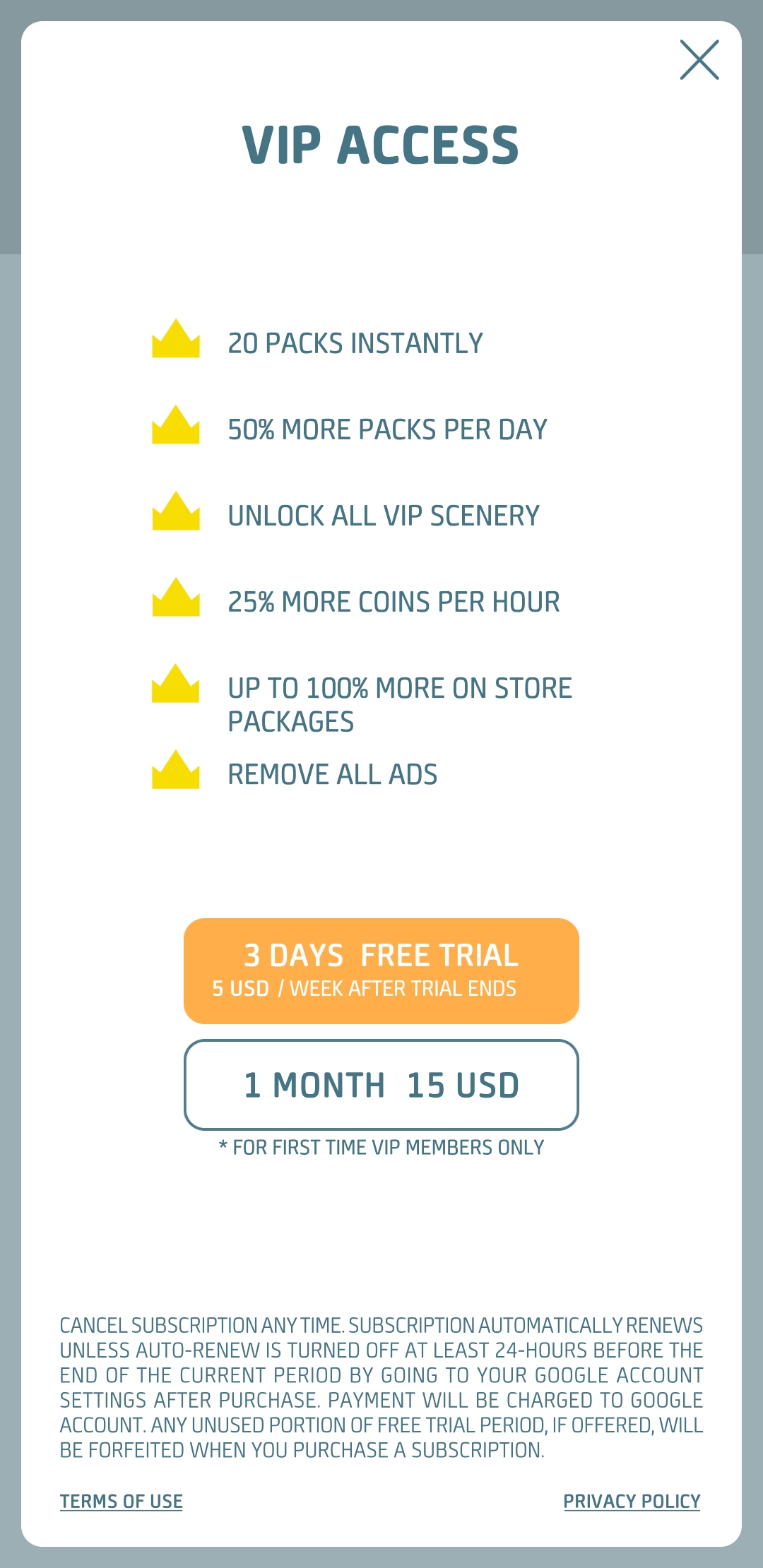 The pressure to pay in Color Garden – Build by Number is medium to high, depending on how bothered the player is by being unable to complete dioramas in one sitting due to slow coin generation, and whether they’re irked by not being able to complete zones due to paywall dioramas. I was personally okay with these but felt they were too cumbersome for most players. I would’ve preferred the first zone to be completely free with balanced coin generation, but then subsequent zones to be purchasable.