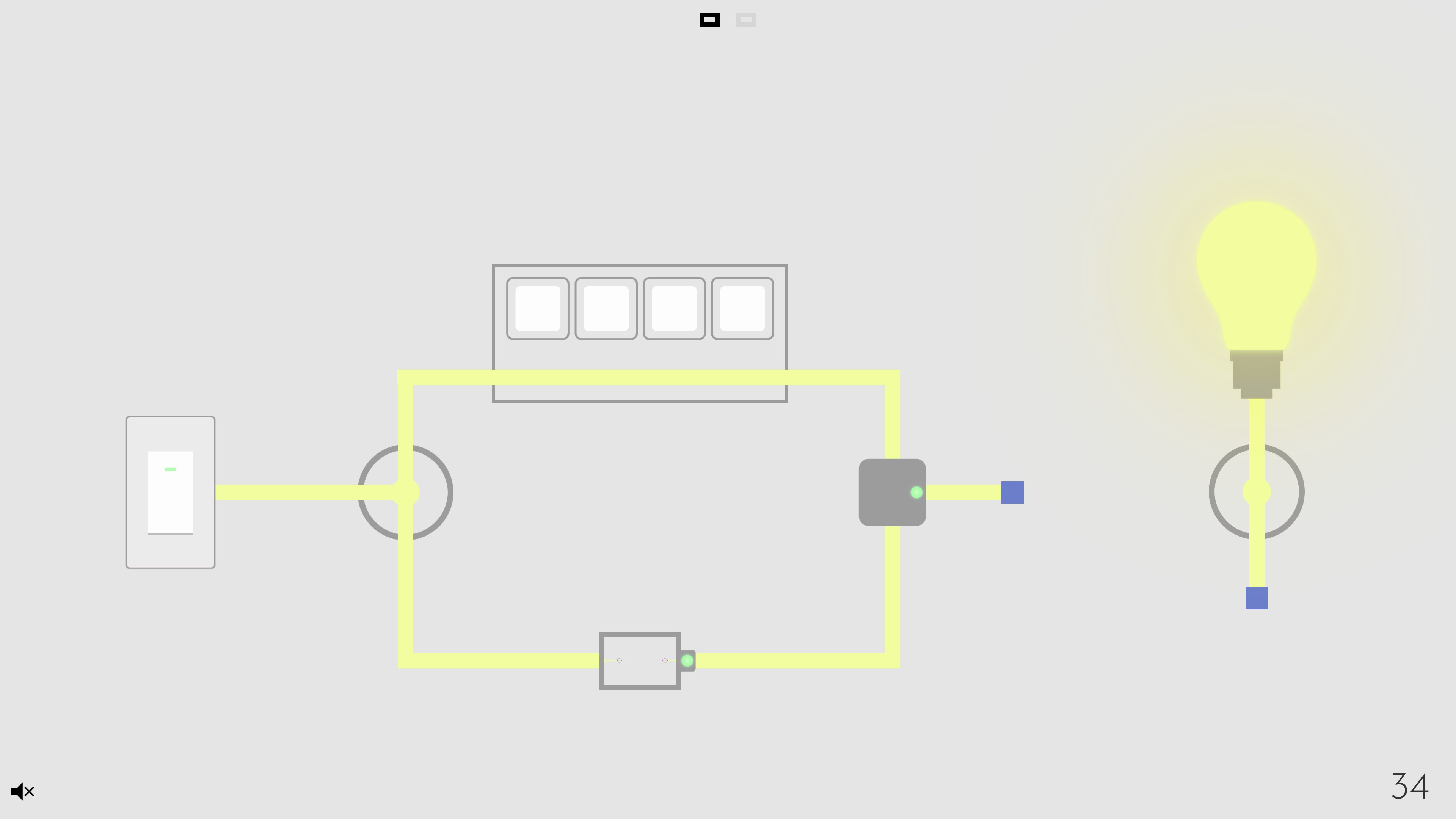 Turn on the light introduces a number of different circuit components. Some of the first are easy rotating wire connections and numbered nodes that must be passed through in order. Later on, circuits may require solving mini-puzzles such as flicking switches, aligning wires, or turning magnetic dials.