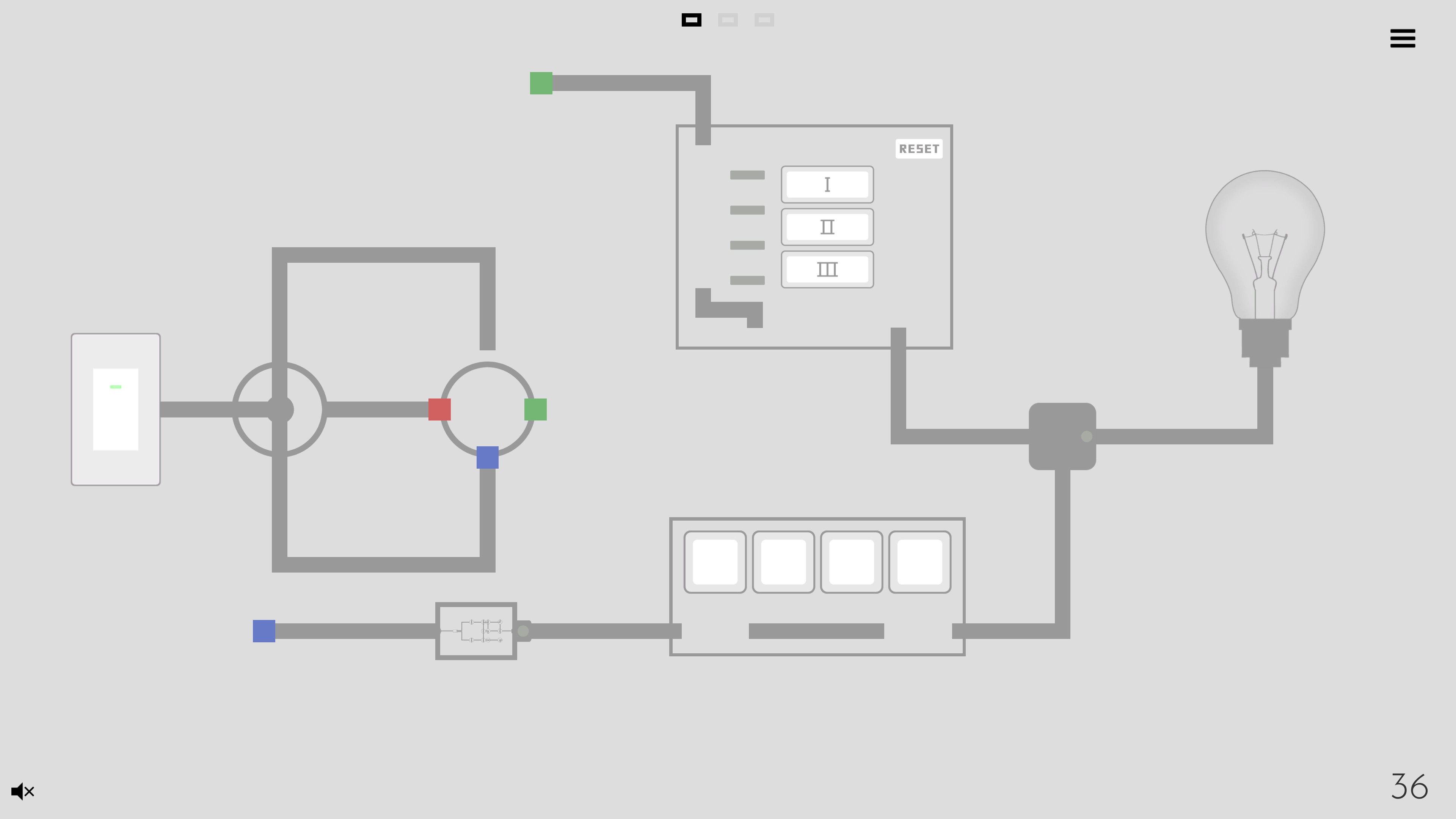 Turn on the light is a short minimalist puzzle game about connecting circuits and getting power from the switch to the light bulb. Players start out by arranging wire intersections but are soon faced with intervening mechanisms, splitting paths, and embedded circuits. No knowledge of real circuits is required to play Turn on the light, the circuits are purely thematic.