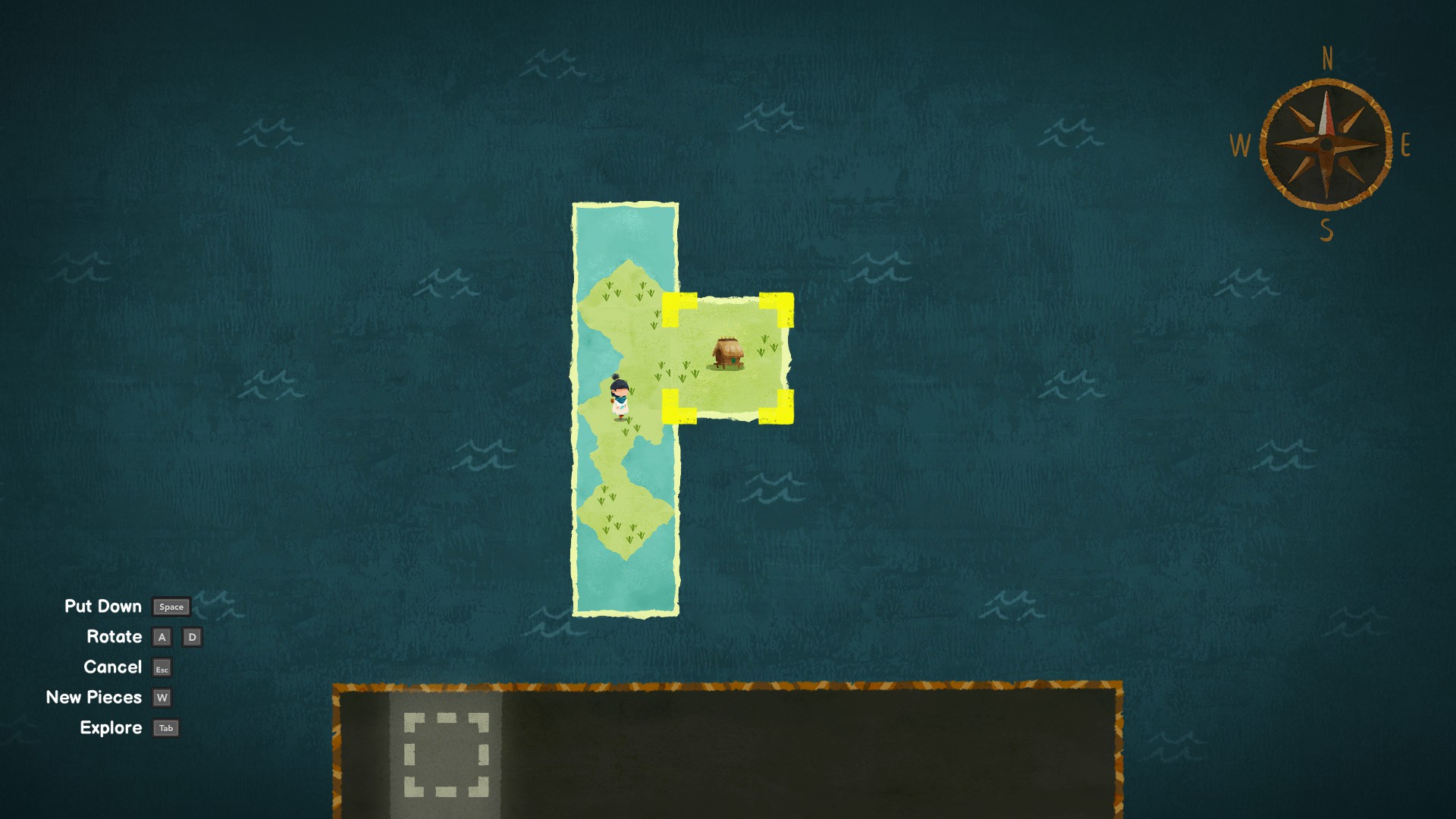 The demo for Carto starts off with a young girl named Carto seemingly alone on an island. By exploring around she can find map pieces and connect them (or not) to the land she’s already on. Pieces MUST line up at the edges but can be rotated and moved as many times as desired. The demo shows off several terrain types to match: water, plains, and forest.