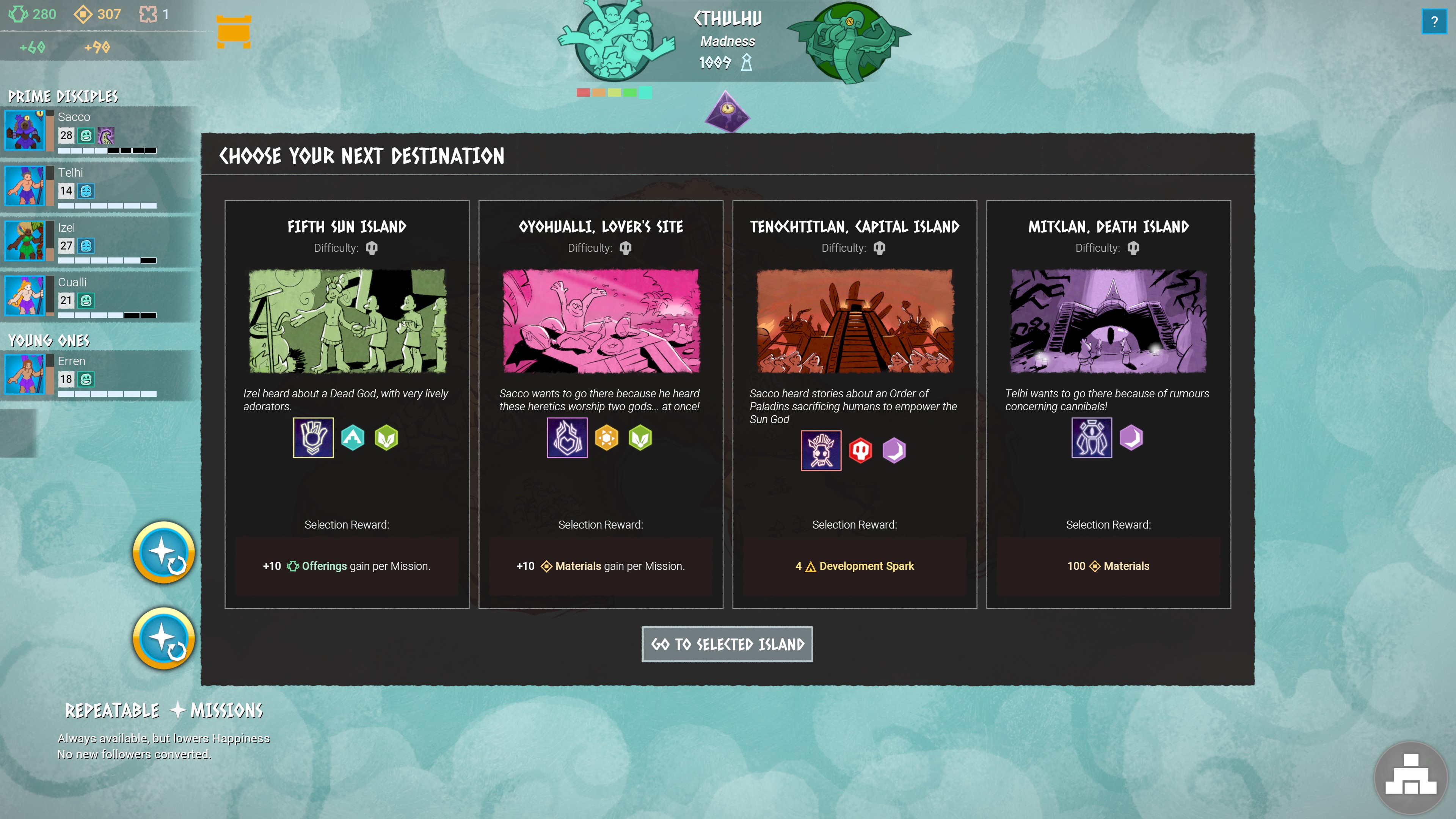Losing or being reduced to 0 health in combats can be a heavy burden, slowly breaking the player’s bond with their disciples until they abandon the religion and have to be replaced with an unleveled recruit. However not progressing fast enough through defeating other gods can lower the follower’s happiness and cause a game over. Disciples will also eventually grow old, lowering their defensive stats and leading to death. Eventually, all disciples must be replaced, breaking up even the most well-oiled teams and leading to rocky times if players aren’t prepared.