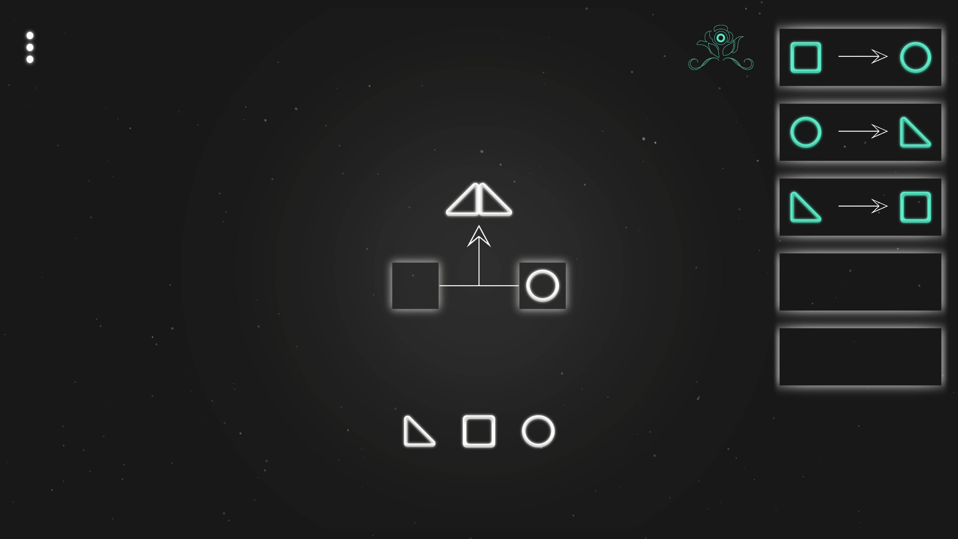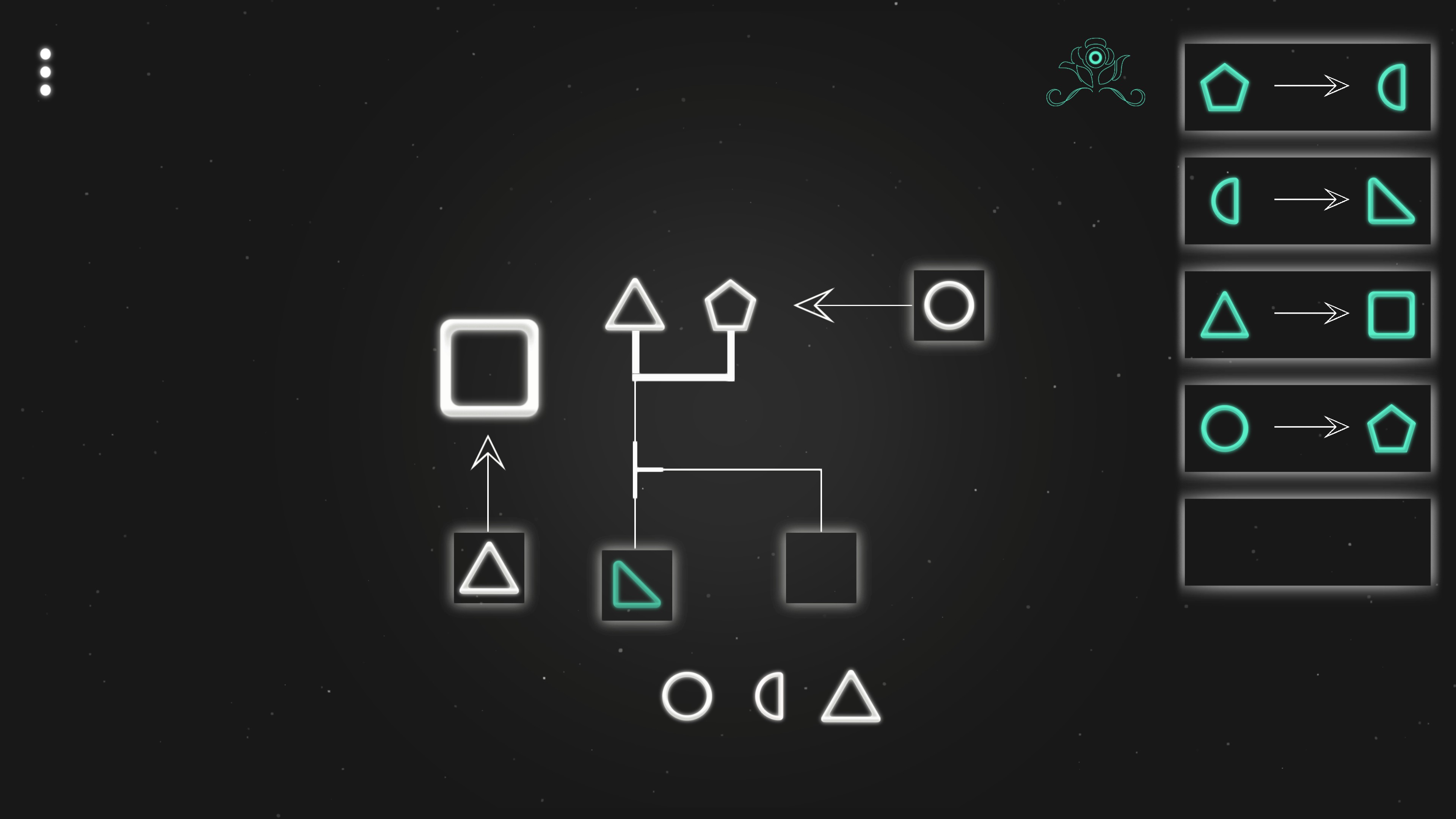 Hidden Memory is a wordless puzzle game about building shapes. Each puzzle players will be given a shape exchange rule they have to memorize and then several others that are available from the sidebar. The goal is to place shapes into the empty slots such that they create the parts of the morphed shapes once exchanged. The exchange process is not visualized and no progress is given, players have to figure out and troubleshoot their solutions on their own.