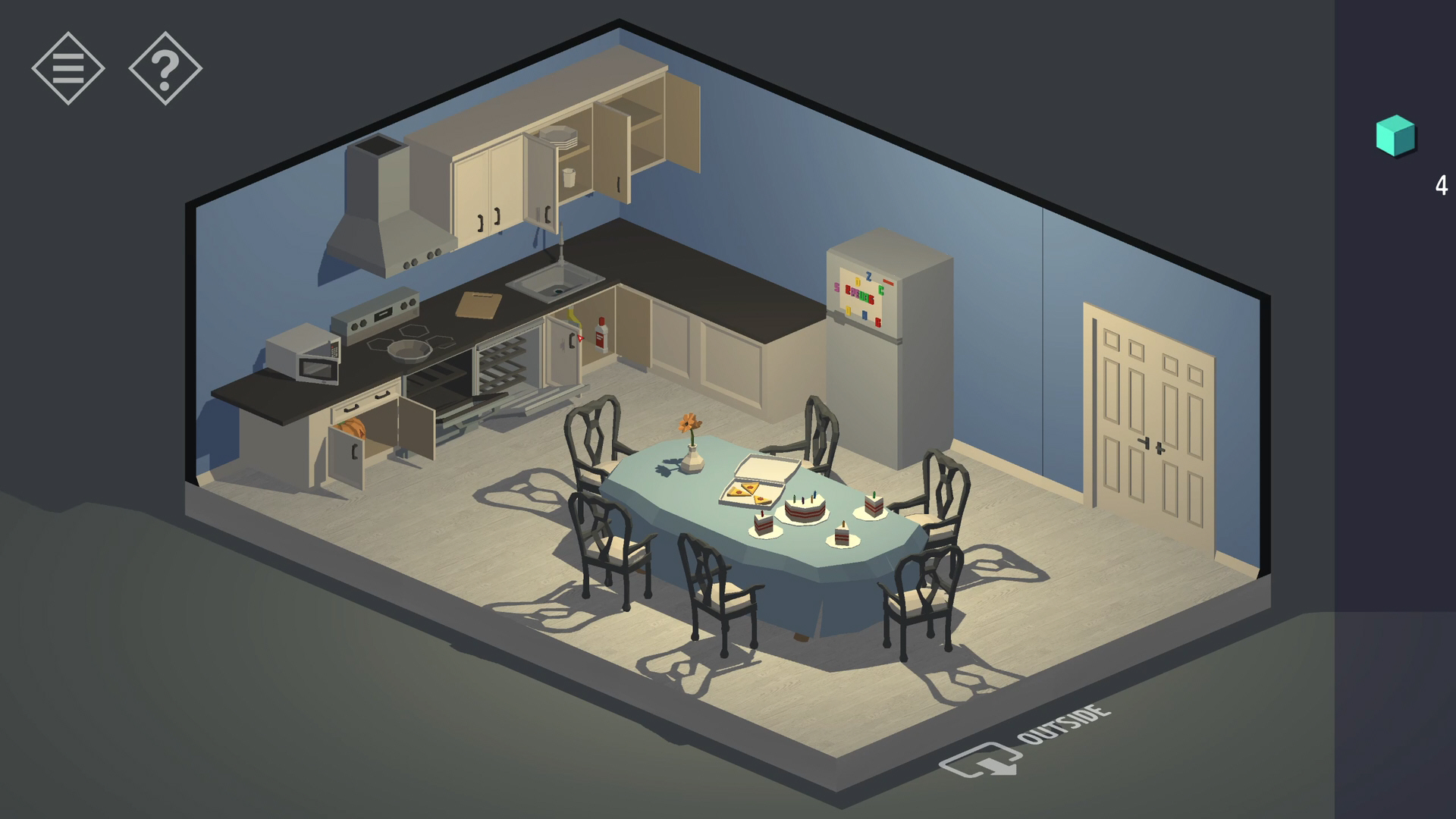 Tiny Room Mysteries: Town Mystery is an adventure puzzle game. Much like an escape room, players start most chapters in a limited area and must explore for clues, keys, and other items. Finding information to deduce passwords and other combinations is a common theme. To explore their surroundings, players can rotate their isometric view as they move between rooms. Doing so is important, as multiple walls of a room often contain important information.