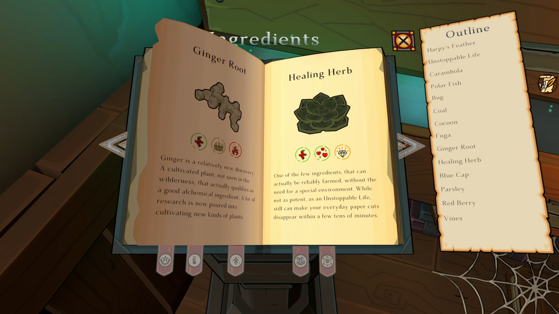 I also had some technical difficulties in selling potions. Often potions could not be turned in / sold using the assistant. I think this had to do with whether ingredients were being delivered, but it led to a lot of shuffling back and forth trying to click on the assistant from different angles as if that might suddenly work. I also had frustrating issues with ingredients frequently disappearing overnight, which was particularly common on the dryer. Moving ingredients or potions to dedicated shelves seemed to avoid this, but the game neglects to ever tell the player where they can place ingredients that have already been processed. Despite being frustrated by this and trying to place ingredients all over the place, I failed to find the dedicated shelves right in front of my face because the hitboxes were so small.