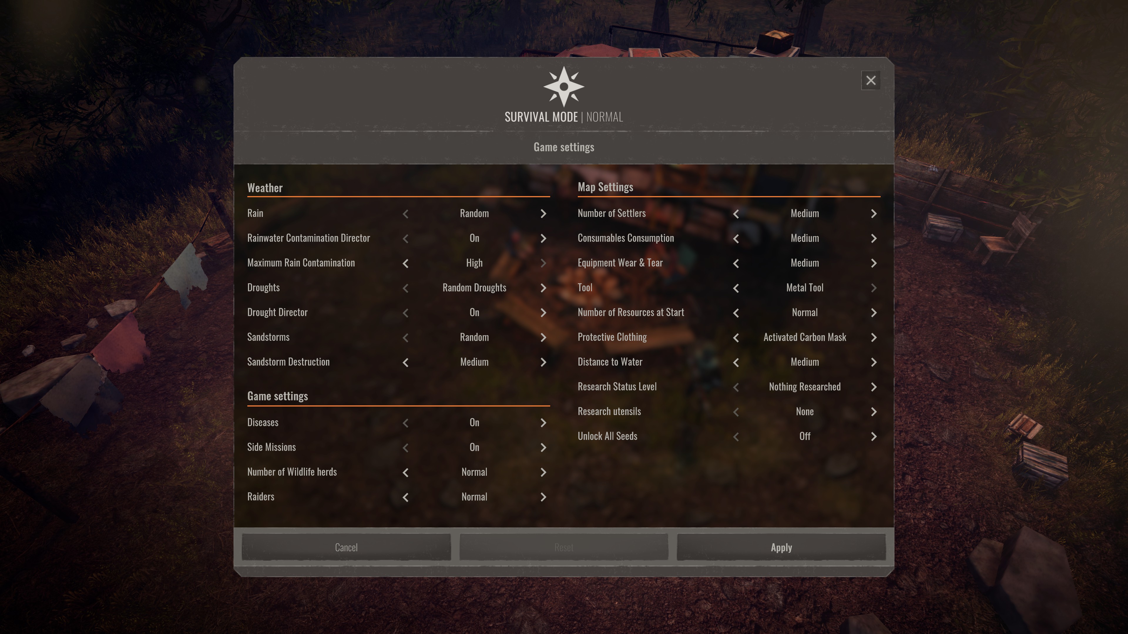 One of the things I enjoyed about Endzone – A World Apart was the environment and how players could interact with it. Close to the settlement, this would primarily mean handling loss of water during drought and the resulting loss of plants and potentially crops or dealing with contaminated rain spreading and heightening radiation into the settlement. Both of these have dynamic visual effects on the terrain across the map and make the world feel more immersive. Droughts can also bring sandstorms that sweep across the map and damage buildings. Later into the game, players can also start up expeditions and explore select ruins scattered around the map. While this might turn up usual resources like scrap, food, tools, etc. it can also result in more valuable things like new seeds for farming or research tier advancement. Research advancements are by far my favorite things to find, with higher tiers allowing players to do things like reintroduce electricity, collect scrap from sandstorms, and upgrade a number of buildings. The collector in me also loves getting all the seeds, but I found the different farm (and ranching) options to all feel the same and deliver roughly the same amount of food over time.