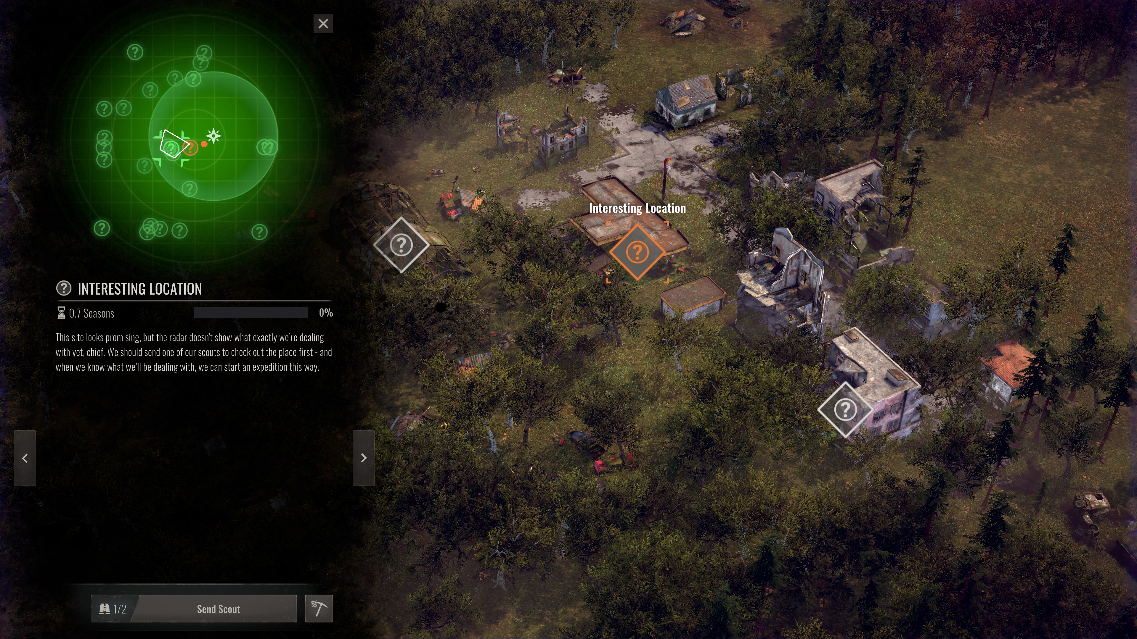 Endzone – A World Apart is a city builder survival game set in a post-apocalyptic earth. After 100 years living underground since humans ruined the environment and coated the planet in radiation, a group of settlers emerge from their bunker and try to build a settlement on the surface. Players take on the challenge of providing for these survivors, managing resources like food and water, and crafting things like medicine and radiation suits. Players direct the construction of buildings, collection of resources, and allocation of jobs. They can also choose policies like what kind of radiation protection to craft, plants to grow, and ammo to use. Both raiders and traders also appear once far enough into a run, allowing the player to barter trade deals or (hopefully) defeat raiders for random rewards. There are 10 directed scenarios (anywhere from 2-9 hours each) and an endless survival mode. In both cases, players can get semi-random mini-missions during the game from their settlers which can do everything from alleviate resource shortages to provide unique seeds or decorative buildings.