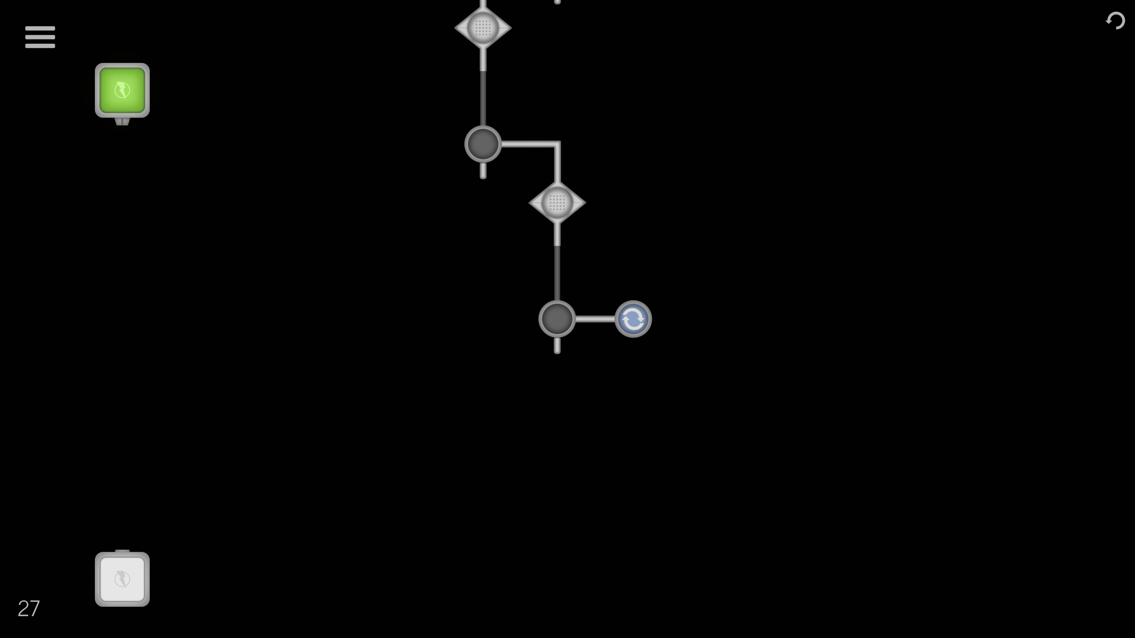 Flex hooks is a minimalist puzzle game where players manipulate pieces to clear a path for bolts of energy. Shooting bolts to every receptacle is required to complete each level, often with multiple steps involved. The primary mechanic is for players to slide and rotate hooks or other metallic objects. These hooks have collision with each other, so shuffling them around in the correct order is key. Throughout the game new hook types and manipulations are introduced, increasing the complexity and allowing for unique level strategies. Flex Hook uses no words to describe new mechanics to players and instead relies on simple tutorial-esque levels so players can discover how parts move on their own.